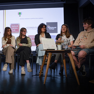 Om het harde werk dat zij in de productie van de krant hebben gestoken te vieren, presenteerden de studenten hun bijdragen aan de krant in het literatuurhuis Vodnik Homstead (waar ook onze partners Ljubljana UNESCO City of Literature gevestigd zijn), samen met journaliste Maida Džinić, die de reeks evenementen op de school in september 2021 aftrapte met een lezing over haar vluchtelingenervaring.